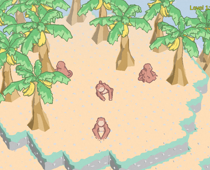 Stranded on islands of the bahamas(i think), you make your way to the GLORIOUS banana island Recruiting fellow stranded monkeys along the way!